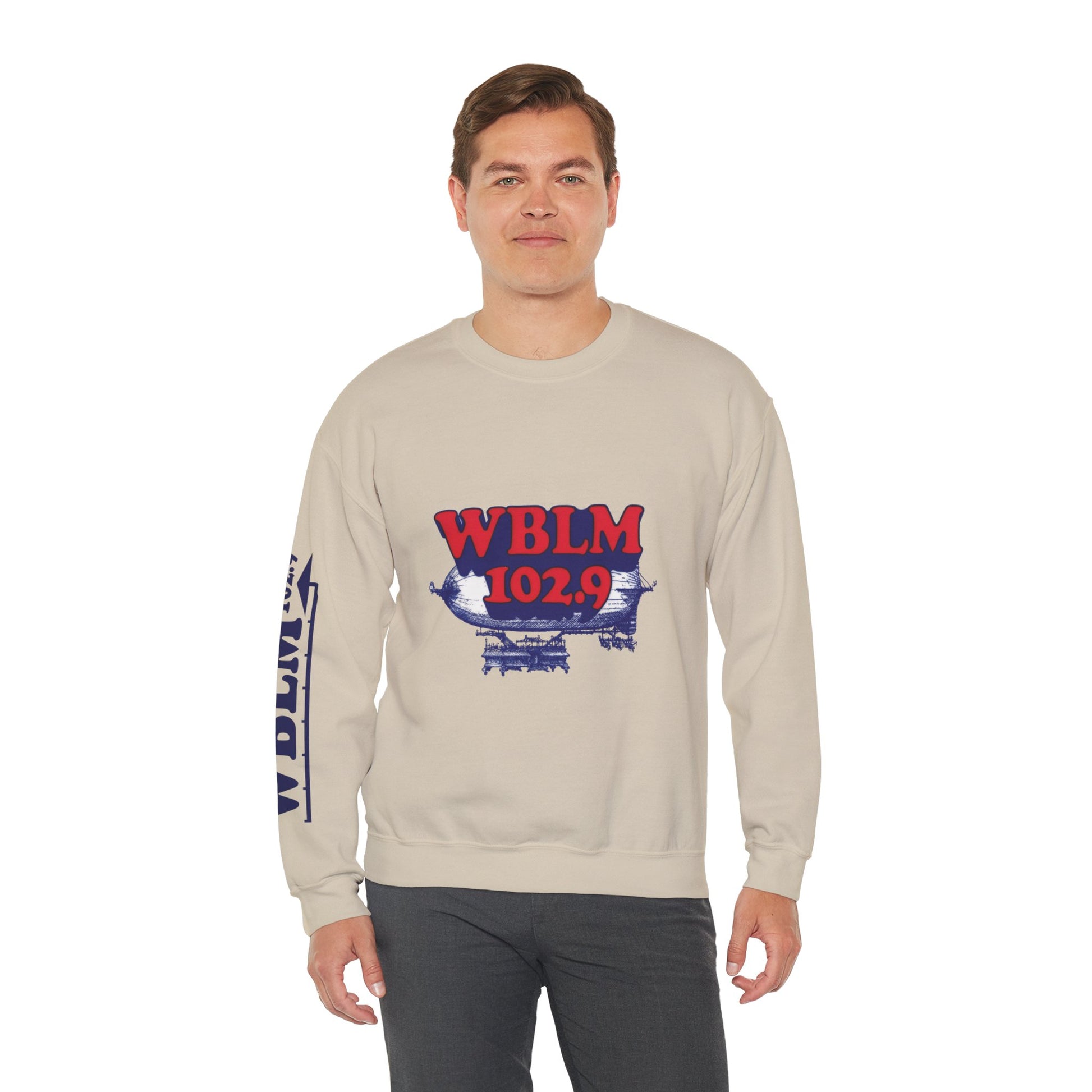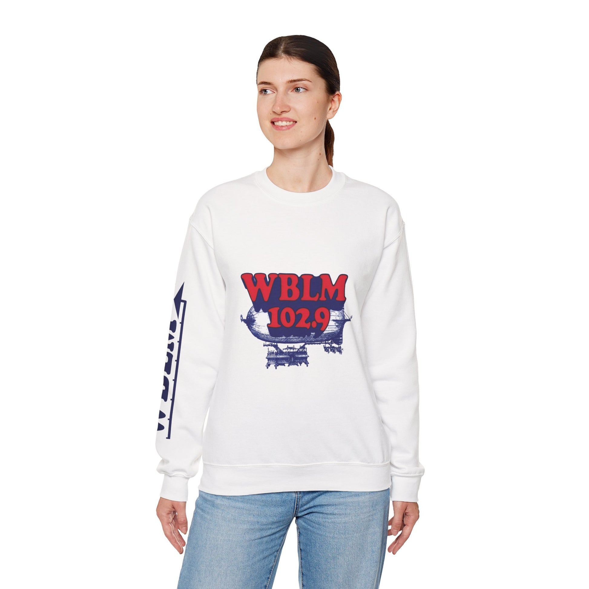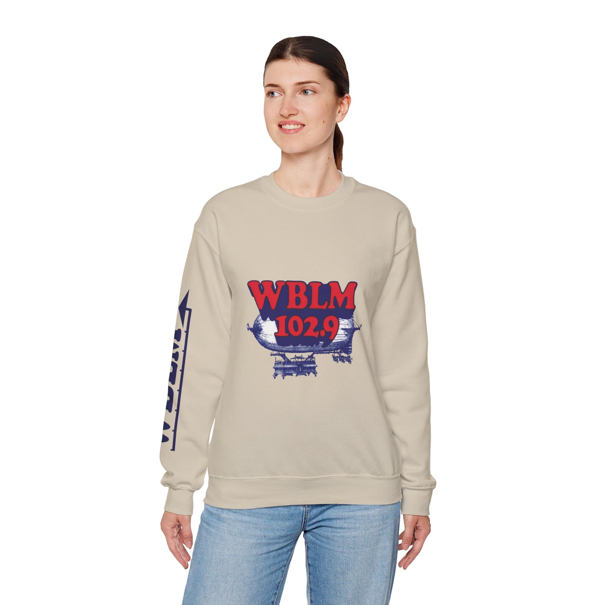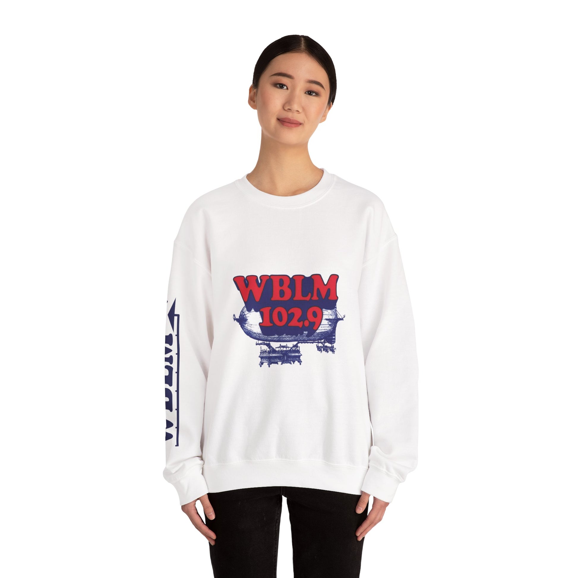 WBLM 102.9 Retro Radio Crewneck Sweatshirt With Radio Dial Sleeve