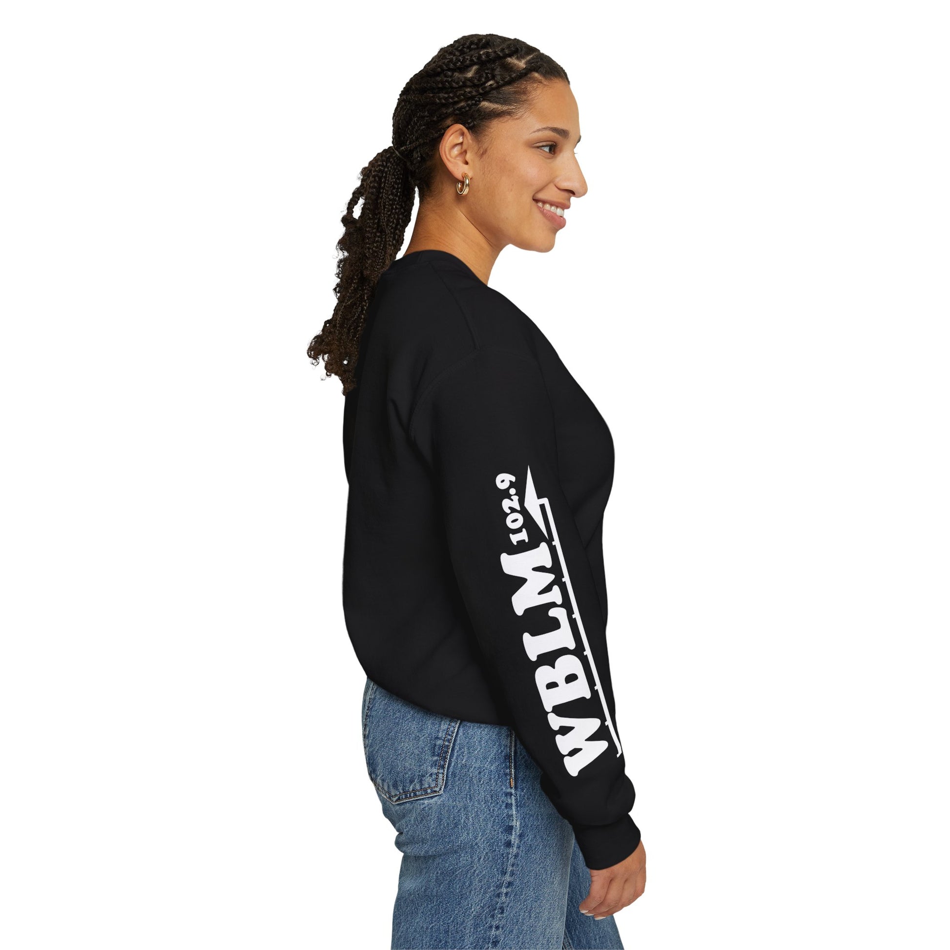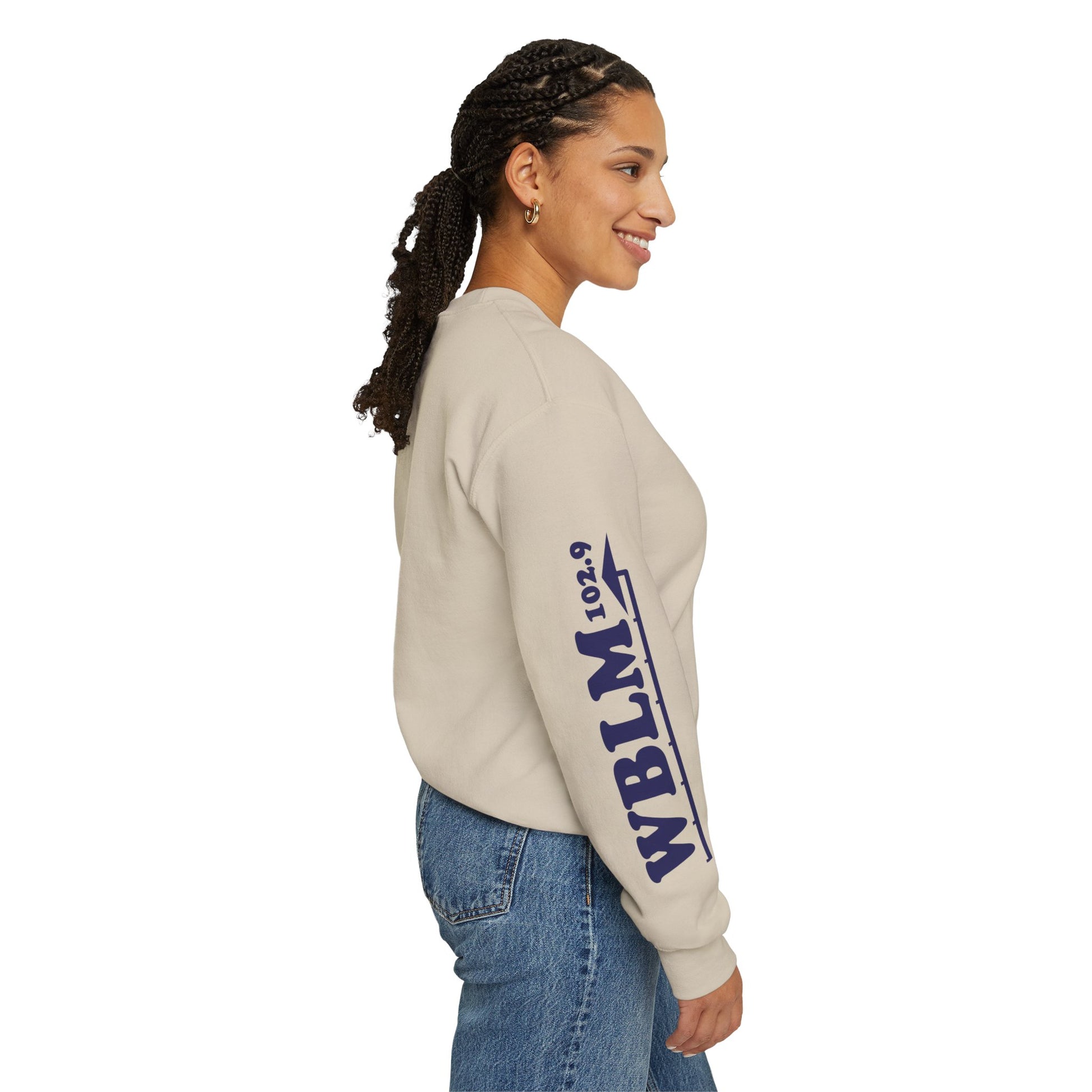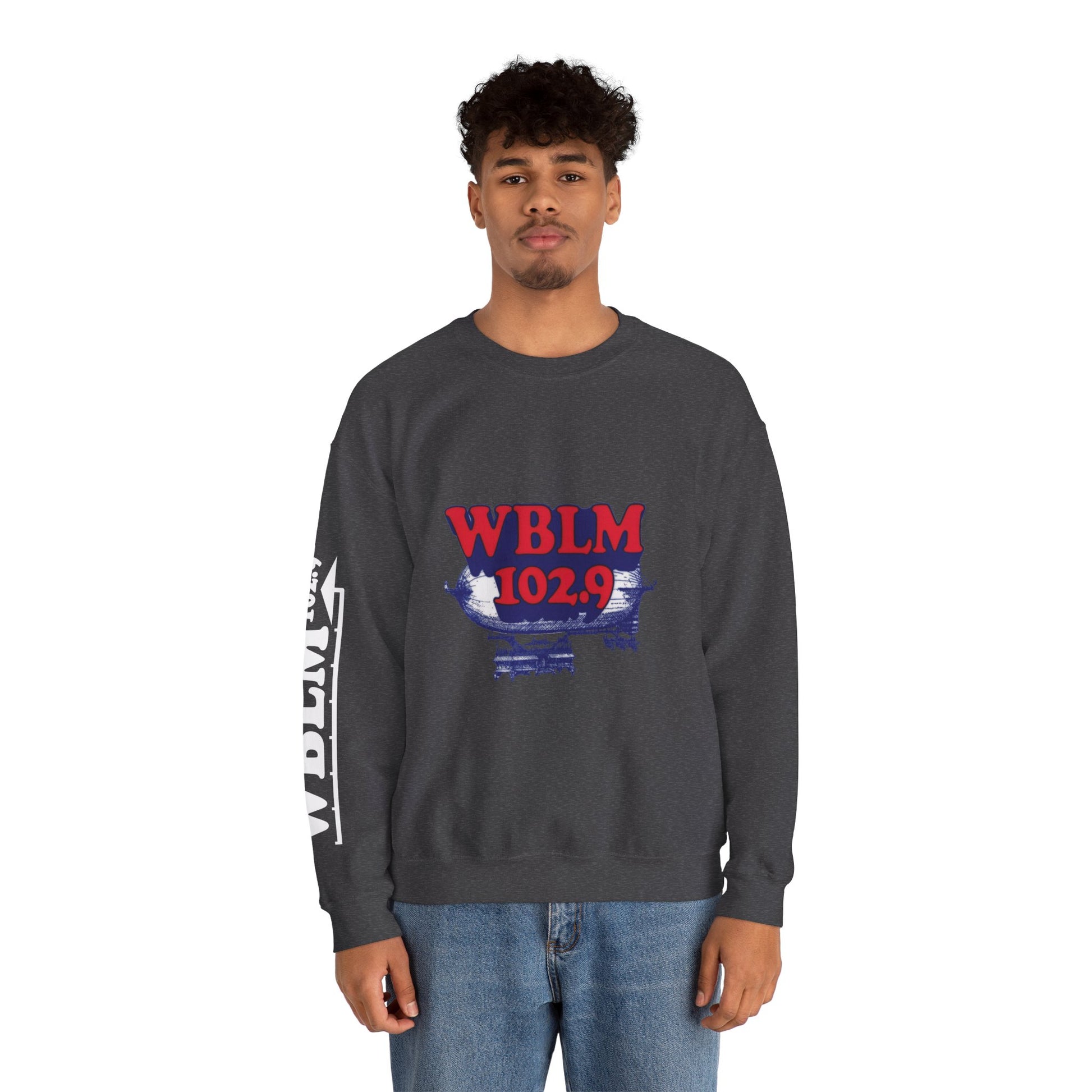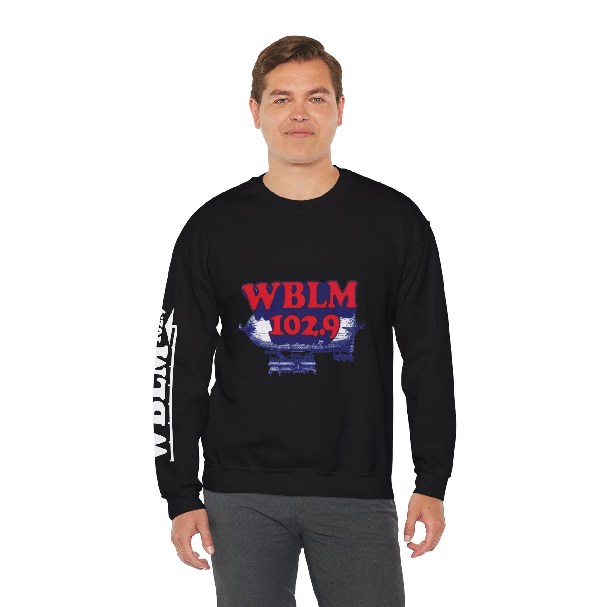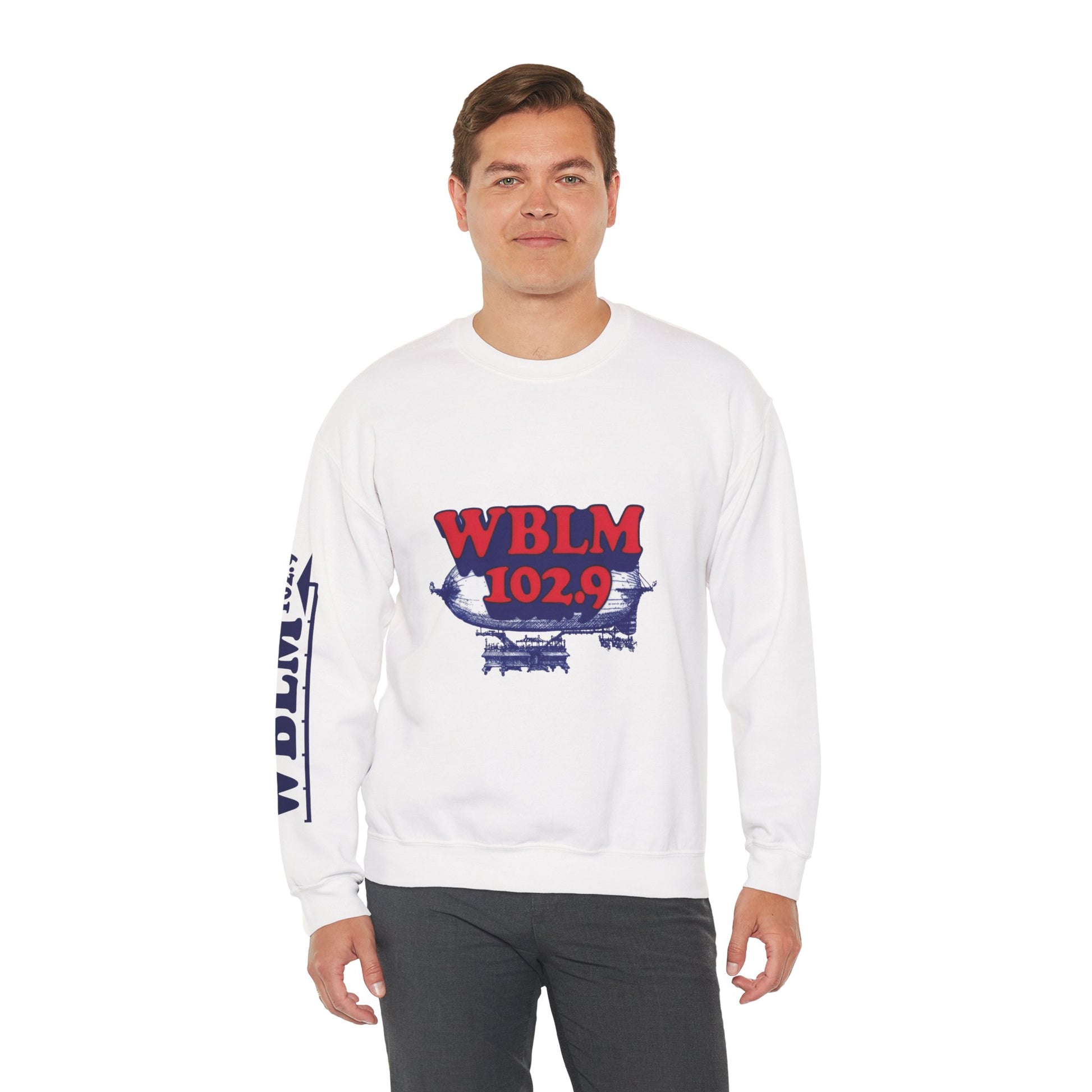 WBLM 102.9 Retro Radio Crewneck Sweatshirt With Radio Dial Sleeve