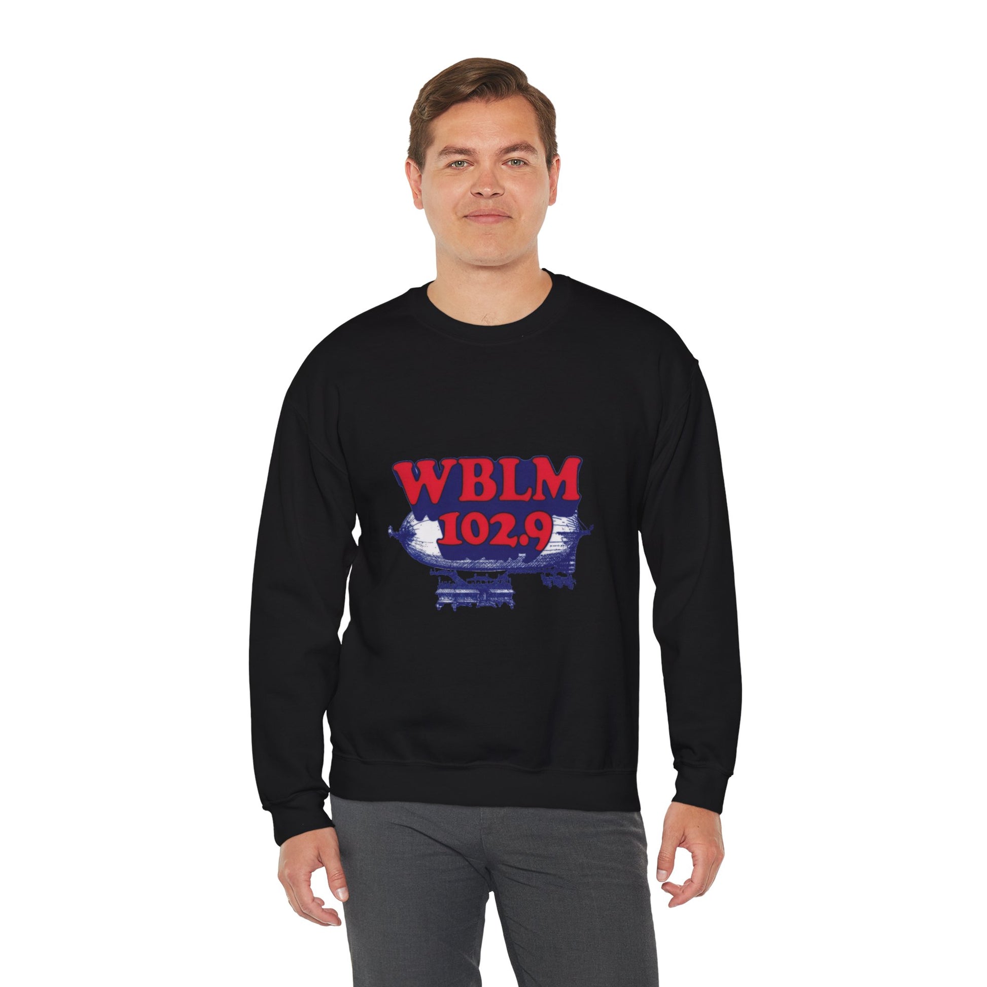 Soft, lived-in warmth with a touch of radio nostalgia. This crewneck wraps you in midweight comfort while wearing a bold, vintage-inspired WBLM 102.9 graphic that nods to summer concerts, late-night drives, and the stations that soundtracked them. The print on front and a subtler logo on the back give the sweatshirt personality from every angle — the kind of piece you reach for on foggy mornings or when you want to bring a bit of hometown radio energy to a night out.